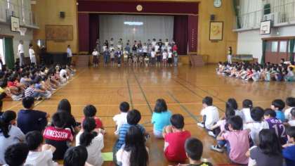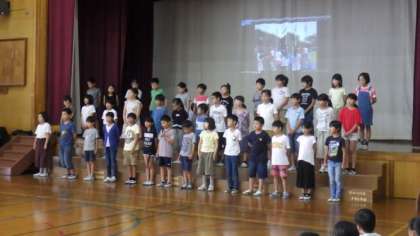 今年度最初の「鳳徳タイム」は,4年生が発表しました。先日のみさきの家野外学習の思い出を,一人一人が川柳をつくって発表しました。
