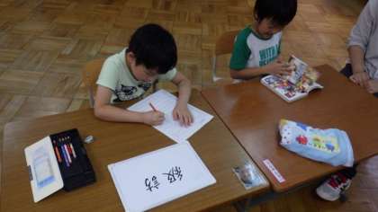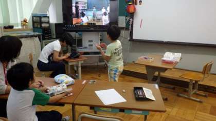 これまでの活動の写真を見ながら,新聞づくりの内容を考えています。