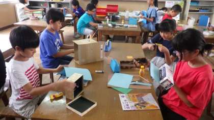 9日(火)6年図画工作「くるくるクランク」
