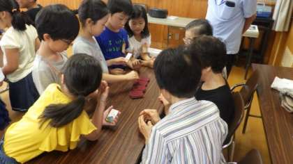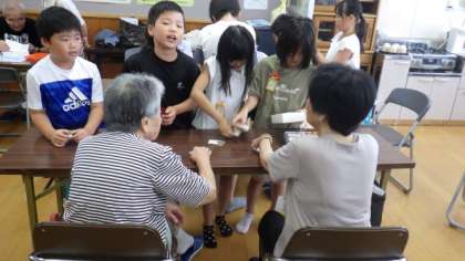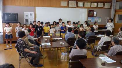 今日は,3年1組が地域の方と交流しました。音楽で学習している歌やリコーダーを発表したり,「ぼうずめくり」をして楽しく遊んだりしました。