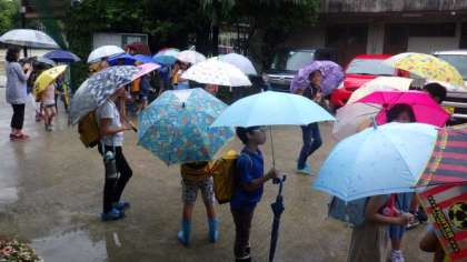 町別集会の後は,放送の指示を聞いて,順番に集団下校をしました。