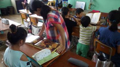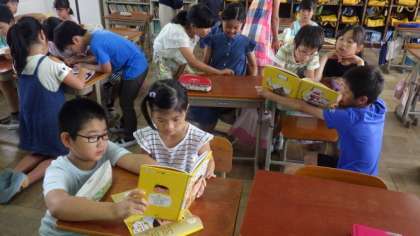 今朝の「さわやかタイム」は,たてわり読み聞かせを行いました。今年度2回目の活動でした。自分で本を選び,下級生に一生懸命読み聞かせをしていました。