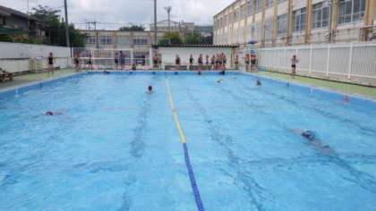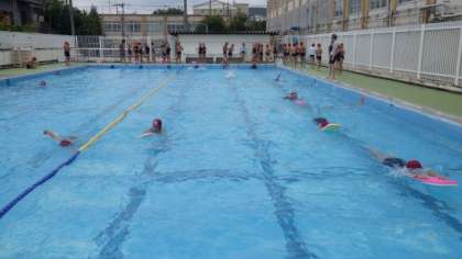 3・4時間目は5年生が水泳学習を行いました。自分のめあてにあわせて,練習を続けたり検定を受けたりしています。