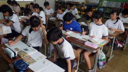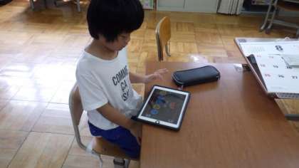 3組は,タブレットを使って言葉の学習をしています。6年生は社会で,3人の武将について学習しています。5年生は平行四辺形やひし形を作図する練習問題に取り組んでいます。
