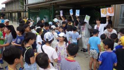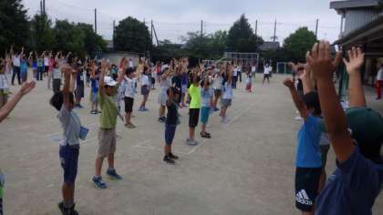 ラジオ体操の後は,カードにスタンプを押してもらいました。参加できる子どもたちは,明日以降もぜひ参加してもらえたらと思います。(雨天の場合は,体育館で行います。)