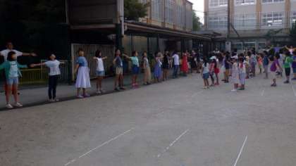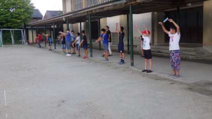 学校運営協議会・体育振興会・PTAの皆様にお世話になったラジオ体操も,今日で最終日となりました。最終日もたくさんの子どもたちが参加していました。6年生もたくさんラジオ体操ボランティアとして参加してくれました。
