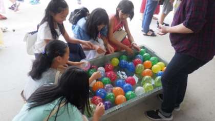 発表の後は,地域の各種団体の皆様,児童館の皆様による楽しいブースが始まりました。たくさんの子どもたちが参加していました。
