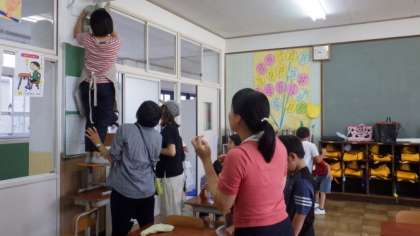 子どもたちの大掃除の時間に,PTAの皆様も来てくださり大掃除をしました。前半は教室の扇風機や窓など,子どもたちの手が届きにくい場所の掃除,後半は運動場や学習園の草ひきをしてくださいました。