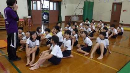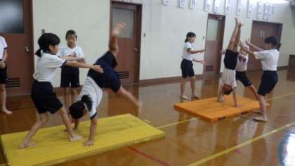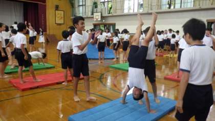 5・6年生合同で,組体操の練習をしています。今日は,一人技や二人技,扇などの練習をしました。