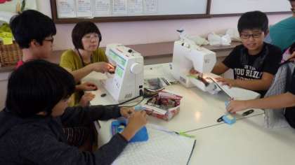 2年生は図画工作で,お話から想像した様子をパスなどで描いています。1年生は道徳で,お話の登場人物の立場になって,「親切」について考えています。6年生は家庭科で,ミシンを使ってナップザックをつくっています。