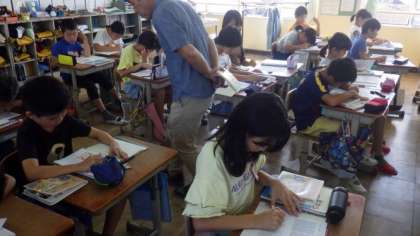 4年生は,算数の学習をしています。5年生は算数で,ワークシートを使って学習しています。