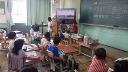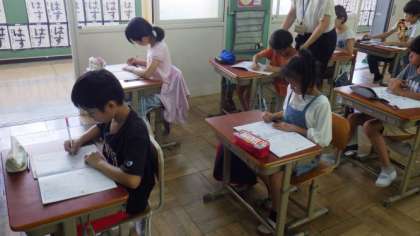 3組は,本の読み聞かせを楽しんでいます。1年生は算数で,かさ(体積)について学習しています。4年生は書写で,硬筆の学習をしています。