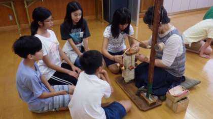「京の『匠』ふれあい事業」で,京くみひも工業協同組合から講師をお招きし,くみひもの体験をさせていただきました。子どもたちはきれいな模様ができるのがとてもうれしい様子でした。
