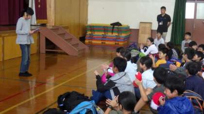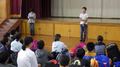 体育館で出発式を行いました。たくさんの方に見送りに来ていただき,ありがとうございました。