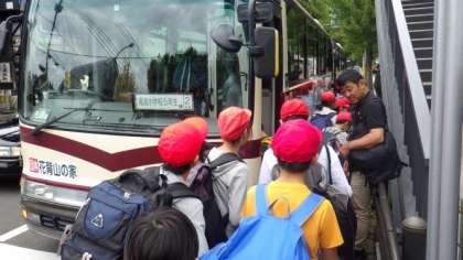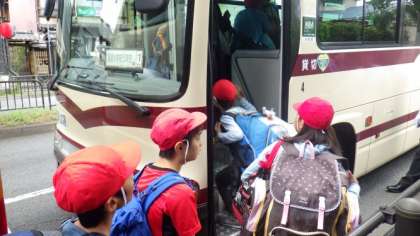 予定通り,バスで学校を出発しました。これから花背山の家へ向かいます。