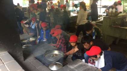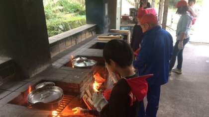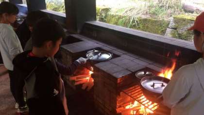 野外炊事は順調に進んでいます。すべての班のかまどに火が入りました。