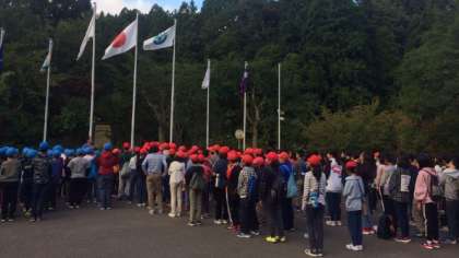 25日(水)5年山の家2日目1 朝のつどい(合同)