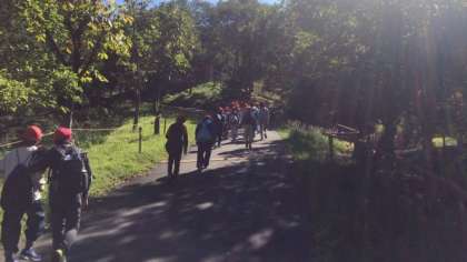 今日の夜に行うナイトハイクのコースを,明るいうちにみんなで歩きました。