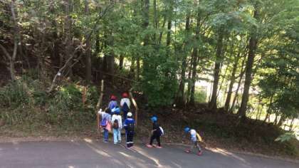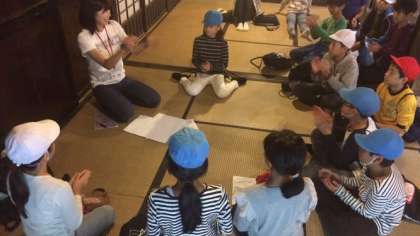 鷹峯小学校・待鳳小学校と合同で,ラリーを行っています。合同のグループで協力して,楽しく活動しています。
