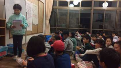 宿泊棟へ戻り,ミーティング室で今日のふり返りを行いました。明日が山の家での活動最終日になります。最終日もみんなで協力して,元気に楽しく過ごしてほしいと思います。