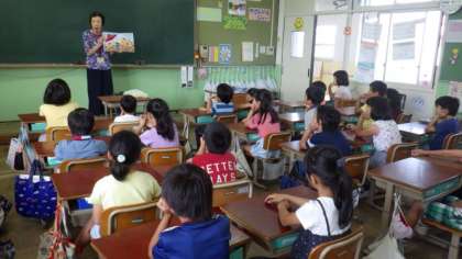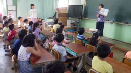 図書ボランティアの皆様に,読み聞かせをしていただいています。今日は,2年生と3組の教室で読み聞かせをしていただきました。