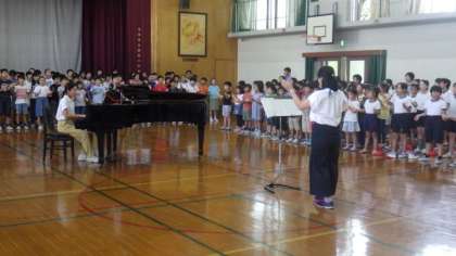 今年度2回目の音楽集会を行いました。今日は「気球にのってどこまでも」を歌いました。2部合唱で楽しく歌いました。