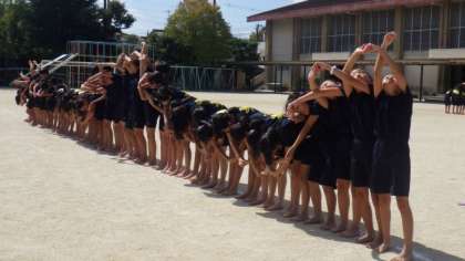 今日は,本番でも着るおそろいのTシャツを着て,練習しました。