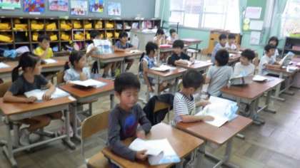 物語文「くじらぐも」の音読を楽しんでいます。