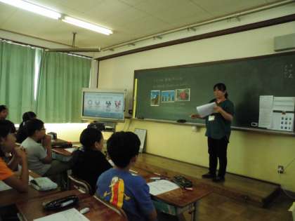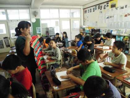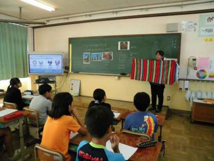 チリ共和国やスペイン語について,教頭先生が紹介をしました。「アートマイル壁画プロジェクト」を通して,オリンピック・パラリンピックで日本へ来られる外国の方を壁画で迎えたいと思います。