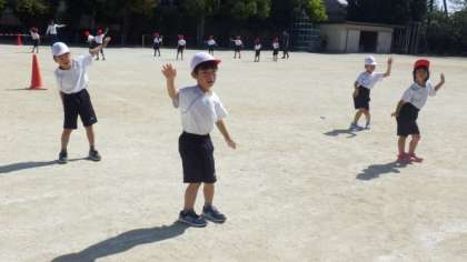 運動会で披露するダンスやデカパン競走の練習をしました。