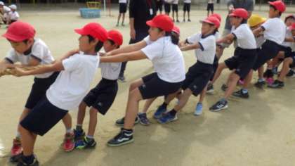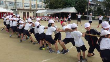 15日(火)運動会たてわり種目練習 つな引き