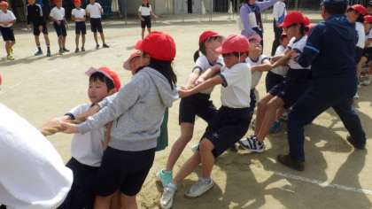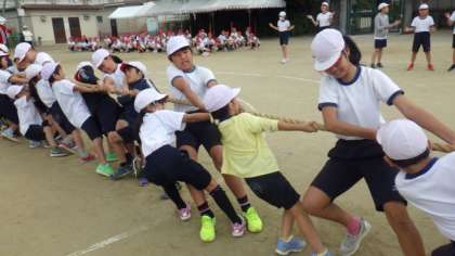 15日(火)運動会たてわり種目練習 つな引き