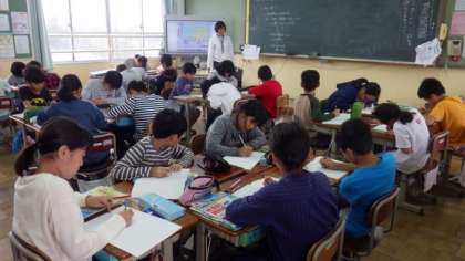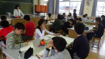 3組は,漢字の学習をしたり,パズルをしたりしています。5年生は社会「くらしを支える食料生産」の学習をしています。6年生は理科「土地のつくりと変化」で,地層や化石について学習しています。