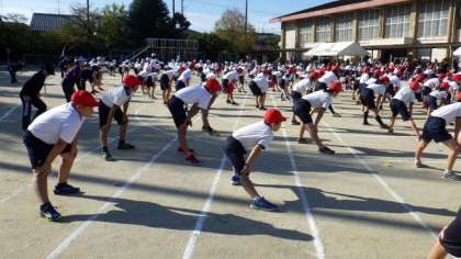 はじめは,全校児童で準備運動をしました。