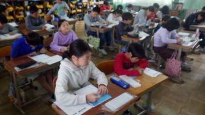 点字器を使って,来週授業でお話をしてくださる方への点字のお手紙を一生懸命打っています。