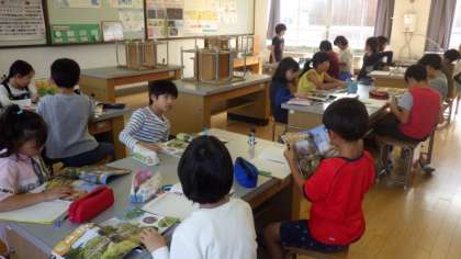 4年生は理科で,夏と秋の動植物について比べています。1年生は国語で,学芸会で発表する「おおきなかぶ」の言葉を確認しています。
