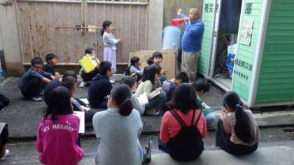 鳳徳自主防災会の鈴木会長に来ていただき,学校にある防災倉庫を見せていただいたり,地域の皆様が災害を防ぐためにどんな活動をしておられるか話を聞いたりしました。地域の方が日頃から備えておられることがよく分かったようです。