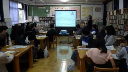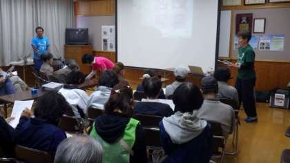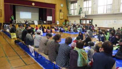 グループに分かれて訓練した後は,体育館で講評しました。子どもたちも参加しており,体験を通して防災についていろいろな面から考える機会となったのではないかと思います。