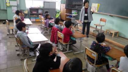 図書ボランティアの皆様にお世話になり,今日は1年生の教室で読み聞かせをしていただきました。秋らしい,ドングリや松ぼっくりの話,今日の文化庁巡回公演に合わせた,音楽についての話など,いろいろな本を読んでいただきました。