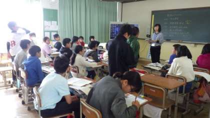 6年生は社会で,「長く続いた戦争と人々のくらし」について学習しています。5年生は算数「単位量あたりの大きさ」で,自分の考えを発表しています。