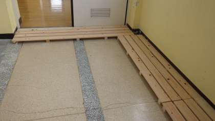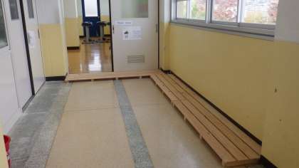 管理用務員が音楽室前のすのこを作りました。子どもたちが気持ちよく過ごすことができるように環境整備しています。