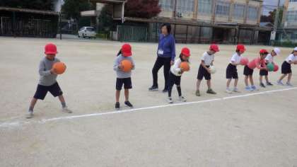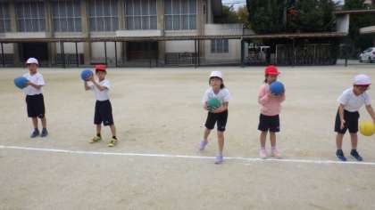 18日(月)1年体育 ボール遊び