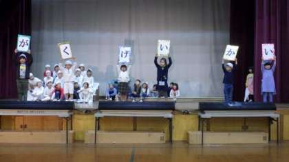 今日は,「はじめのことば」の練習を始めにしました。衣装もつけて「大きなかぶ」の練習をしました。