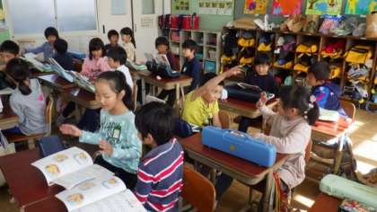 歌詞の表す様子や気持ちを想像し,友達と歌い方の工夫を考えながら「小ぎつね」を歌っています。