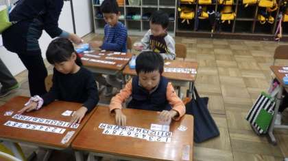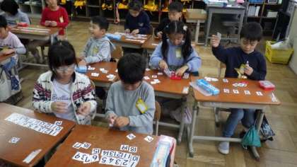 引き算の学習をしています。計算を確かめたり,カードを使って学習したりしています。