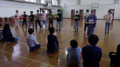 後半は,「さくら」にあわせて簡単な日本舞踊を教えていただきました。