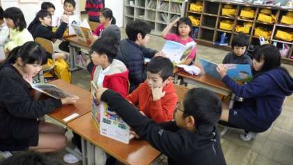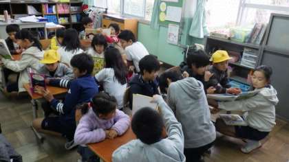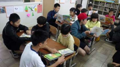 今朝のさわやかタイムは,たてわり読み聞かせを行いました。1年生と6年生,2年生と5年生,3年生と4年生で,たてわり読み聞かせをしています。