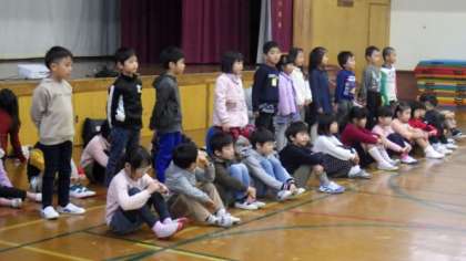 1年生が,これまで育ててきたアサガオや,船岡山での秋みつけについて発表しました。