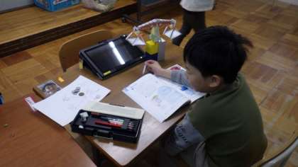 重さについて学習しています。はかりで重さを量ったり,自分でつくった天びんを使って重さを比べたりしました。