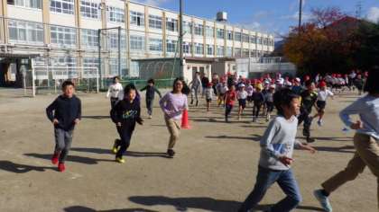 今週一週間は,中間休みに全校で業間マラソンに取り組みます。昨日は雨で中止しましたので,今日が初日となりました。